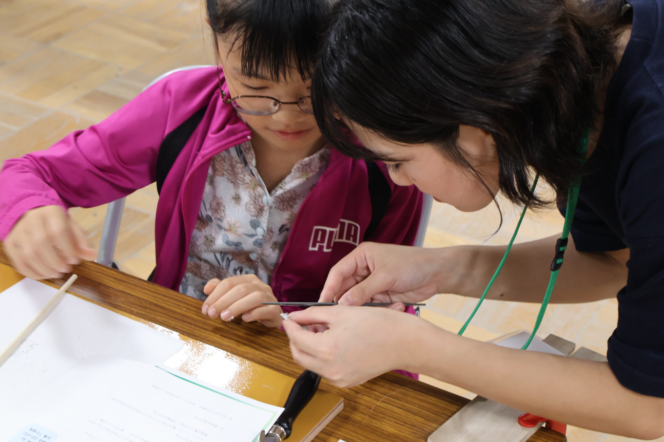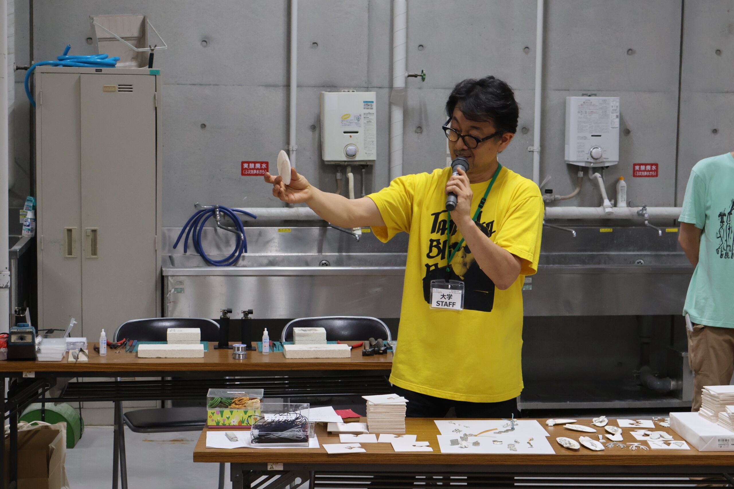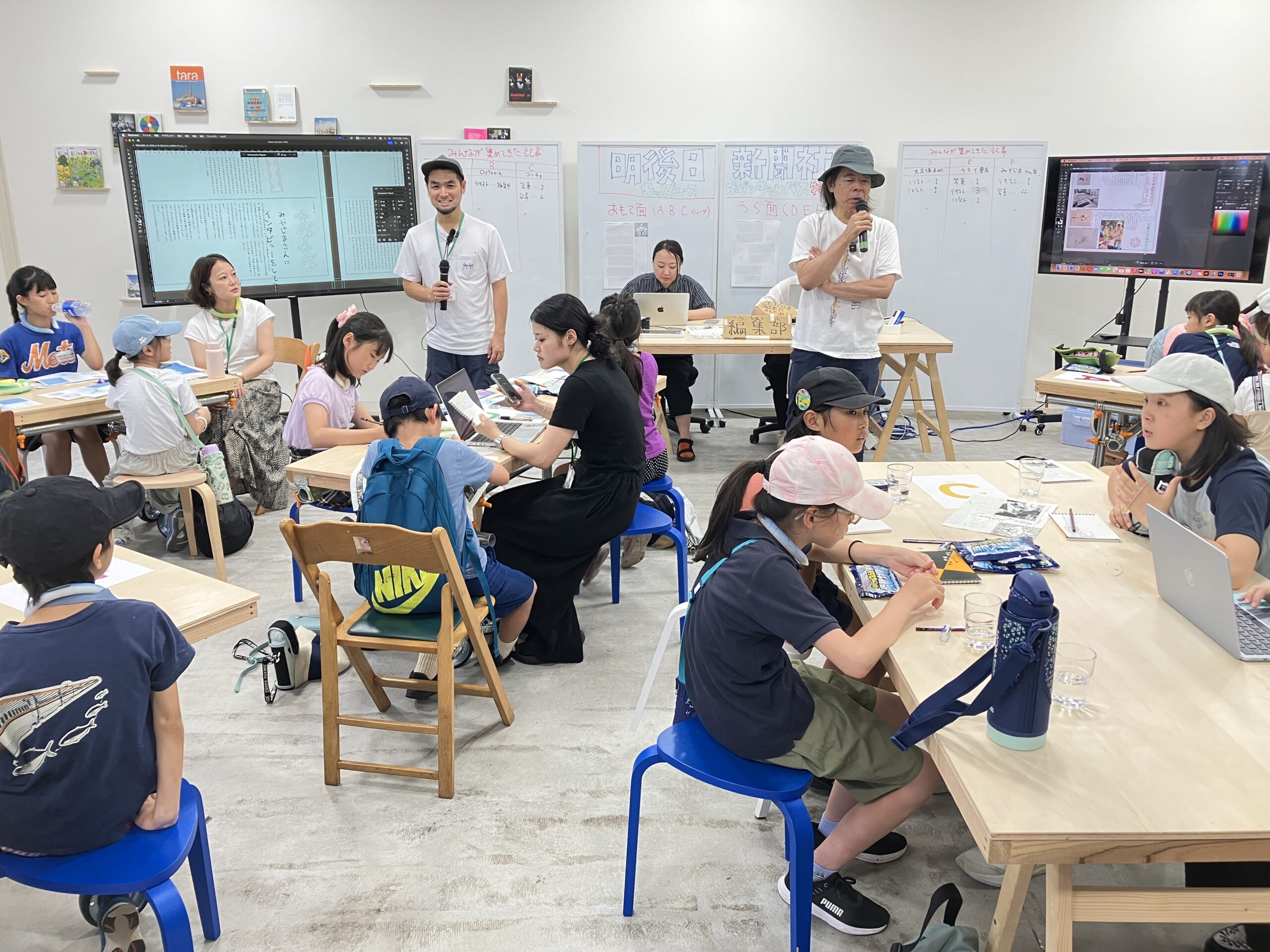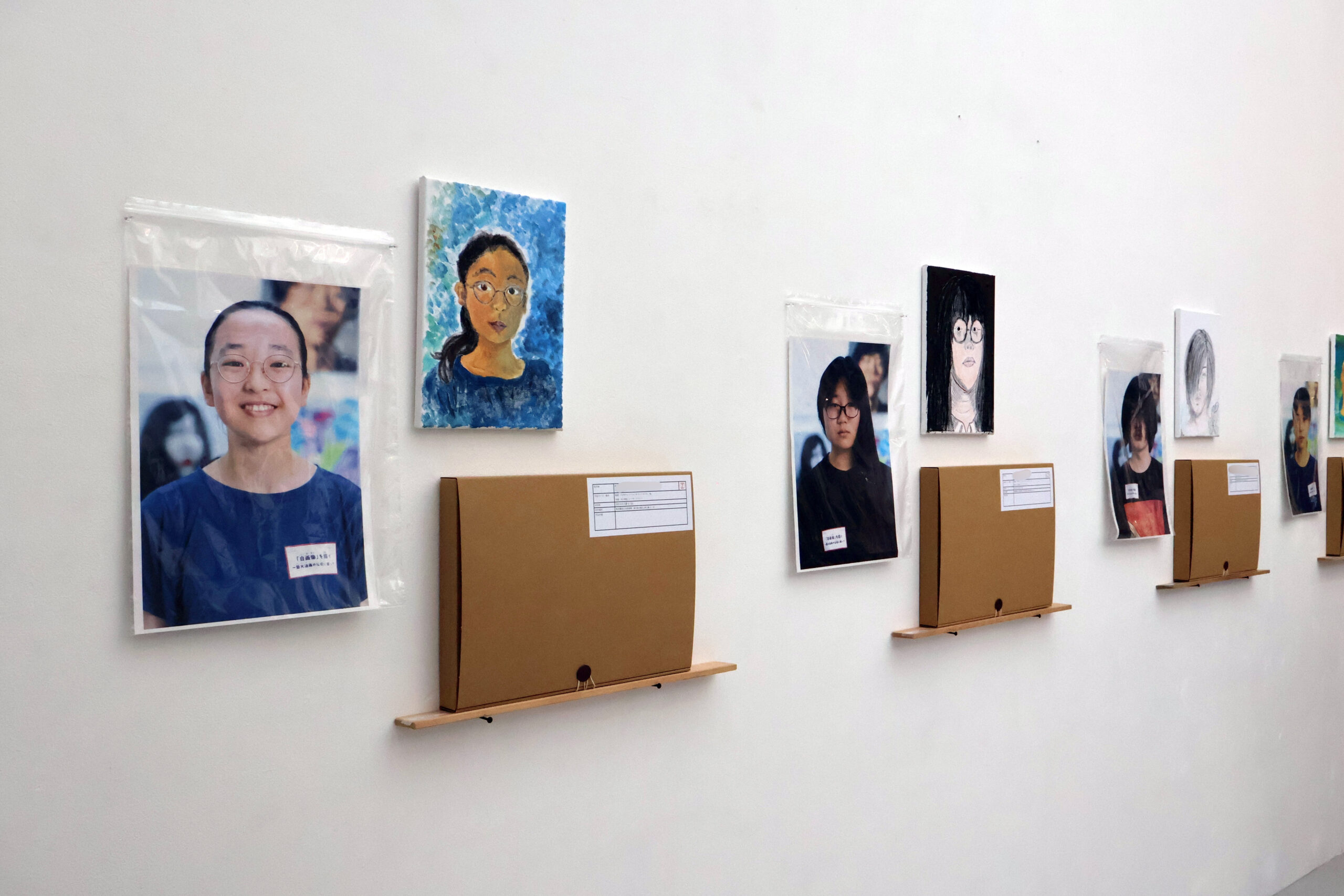 完成した作品は、隣接するギャラリースペースにポートレート写真と並べて展示され、鑑賞と講評の時間が設けられました。子供たちが「もっと肌の色をきちんと描きたかった」「暗く描いた部分で、自信と不安が同居している点を描いた」など自分の作品について説明し、それに対して先生からは「今の君らしい絵になっている」「写真にはない二面性が出たね」などの講評が。それぞれの充実した制作体験をみんなで共有しました。子供たちが自分の表現に対して真剣に考え、自分の言葉で思いを伝えていた様子が印象的でした。作品は油画専攻の伝統に倣い、そして長期保管できる収蔵箱に入れて持ち帰ってもらうという、素敵なプログラムになりました。