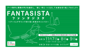 - 「ファンタジスタ~アートとデザインで切り拓く未来のキャンバス~」は、アート作品制作を通してアート教育と環境教育を融合し、未来をつくる「創造する力」を育むプログラムです。アートにある「正解のない課題に挑む力」と、環境教育にある「大きな課題に粘り強く向き合う力」。その二つを結び合わせ、柔軟な思考と前向きに進む意志を育ててきました。本展示では多摩美大生も伴走した子供たちの芸術文化体験と学びの軌跡をご紹介します。